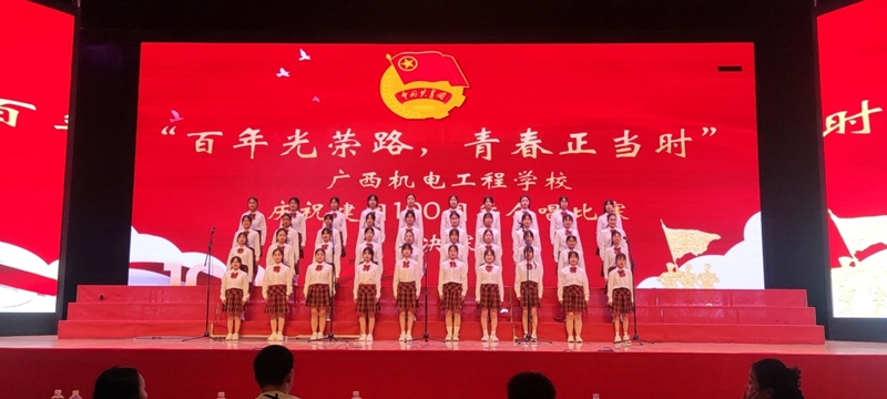决赛在我校7位青年教职工代表演唱的庆祝中国共青团成立100周年宣传主题曲《有我》中拉开序幕。比赛中,20支参赛队伍铿锵有力、气势磅礴地演唱了《光荣啊,中国共青团》《团结就是力量》《祖国不会忘记》《没有共产党就没有新中国》等曲目,饱含深情演绎了《萱草花》《红星歌》《感恩的心》《和你一样》《最好的未来》等曲目。一首首脍炙人口的经典歌曲,一个个整齐划一的动作,一句句对党和人民的深情告白,他们用最饱满的精神状态和最好的舞台效果把最美的歌声献给党,献给团,唱响了中华民族伟大复兴进程中激昂的青春乐章,充分展示了在中国共产党的坚强领导下,我校共青团组织始终把心紧紧同青年学生连在一起,组织引导一代又一代青年学生坚定理想信念、紧跟党走,为争取国家富强、人民幸福、职业教育赓续、校园发展而贡献青春力量。