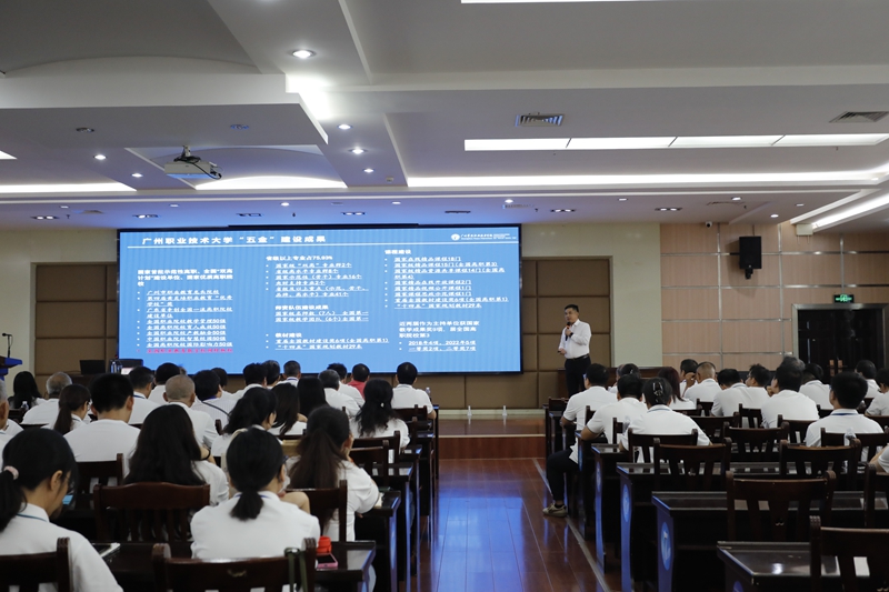 9月15日上午,学校特邀广州职业技术大学副校长李绍中教授为全校教职工开展《数字化赋能职业教育“五金”建设的思考与实践》专题讲座。讲座由学校党委书记、校长雷武逵主持,全体在校教职工到场聆听。