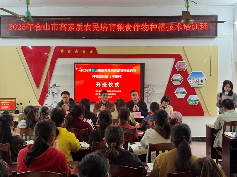 春播正当时,技能助农忙。为深入实施乡村振兴战略,加快构建高素质农民队伍,为粮食安全生产提供坚实的人才支撑,3月23日,由学校继续教育与培训中心承办的合山市2026年高素质农民培育粮食作物种植技术培训班在河里镇河里村顺利开班。50名种粮大户、家庭农场主、农民专业合作社骨干及有意愿提升种植技术的农民学员齐聚一堂,参加此次“充电赋能”之旅。