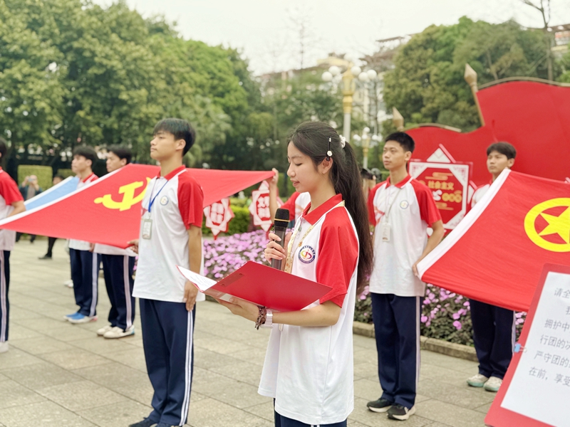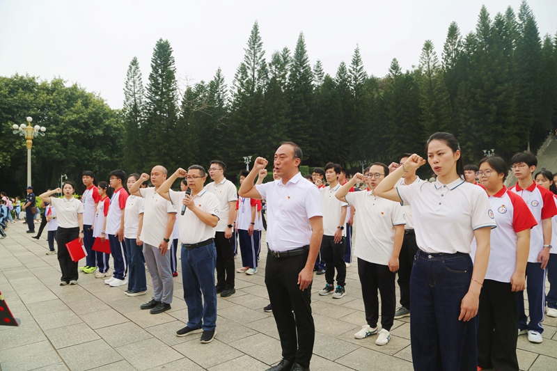 在纪念碑前广场,团员代表深情讲述纪念碑背后的红色历史,引领大家回望那段烽火连天的革命历程,感悟先辈们坚如磐石的信仰力量。随后,党员教师面向党旗重温入党誓词,团员青年面向团旗重温入团誓词,铮铮誓言坚定理想信念。