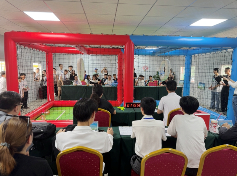 无人机足球是融合航空技术与体育竞技的新兴赛事,选手需操控加装球形保护罩的无人机,在特制球场内完成攻防对抗。比赛现场,无人机疾速穿梭、精准击球,空中对抗紧张激烈。学校参赛队员沉着操控、紧密配合,展现出扎实的专业功底与娴熟的飞行技巧,在多轮比拼中获得裁判与参赛队伍一致认可。