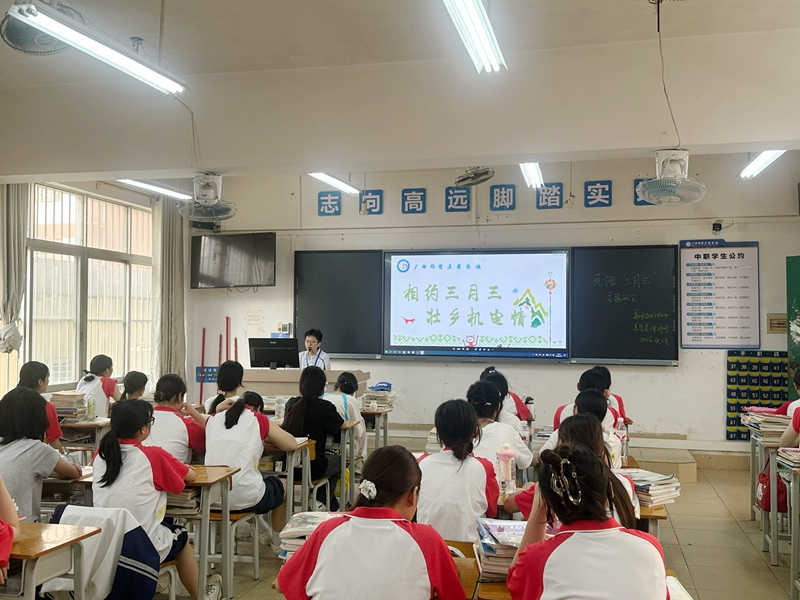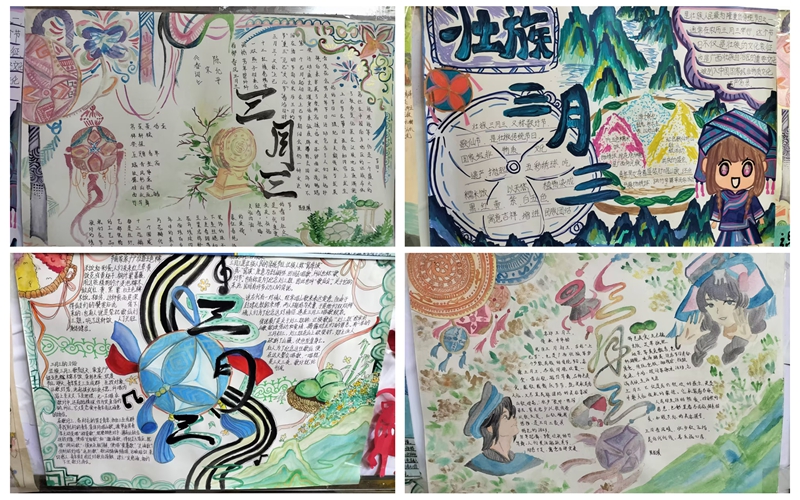 本次活动分前期预热和现场体验两个阶段。在前期准备中,各班级积极开展"三月三"主题班会,同学们通过讲述壮乡故事、观看民俗视频、分享家乡习俗等方式,深入了解节日的文化内涵与历史渊源。同时,各班还精心创作了百余幅手抄报作品,用画笔描绘壮乡风情,用文字书写民族情怀。