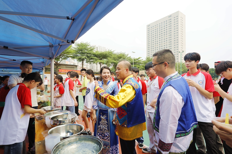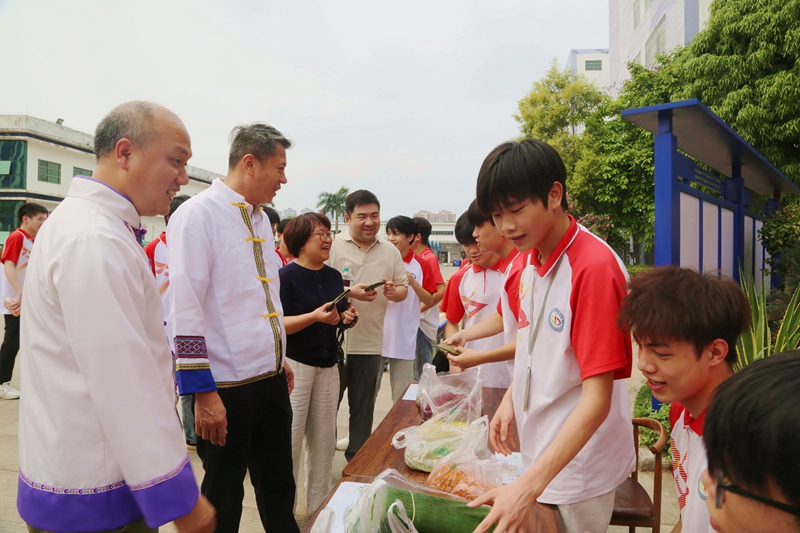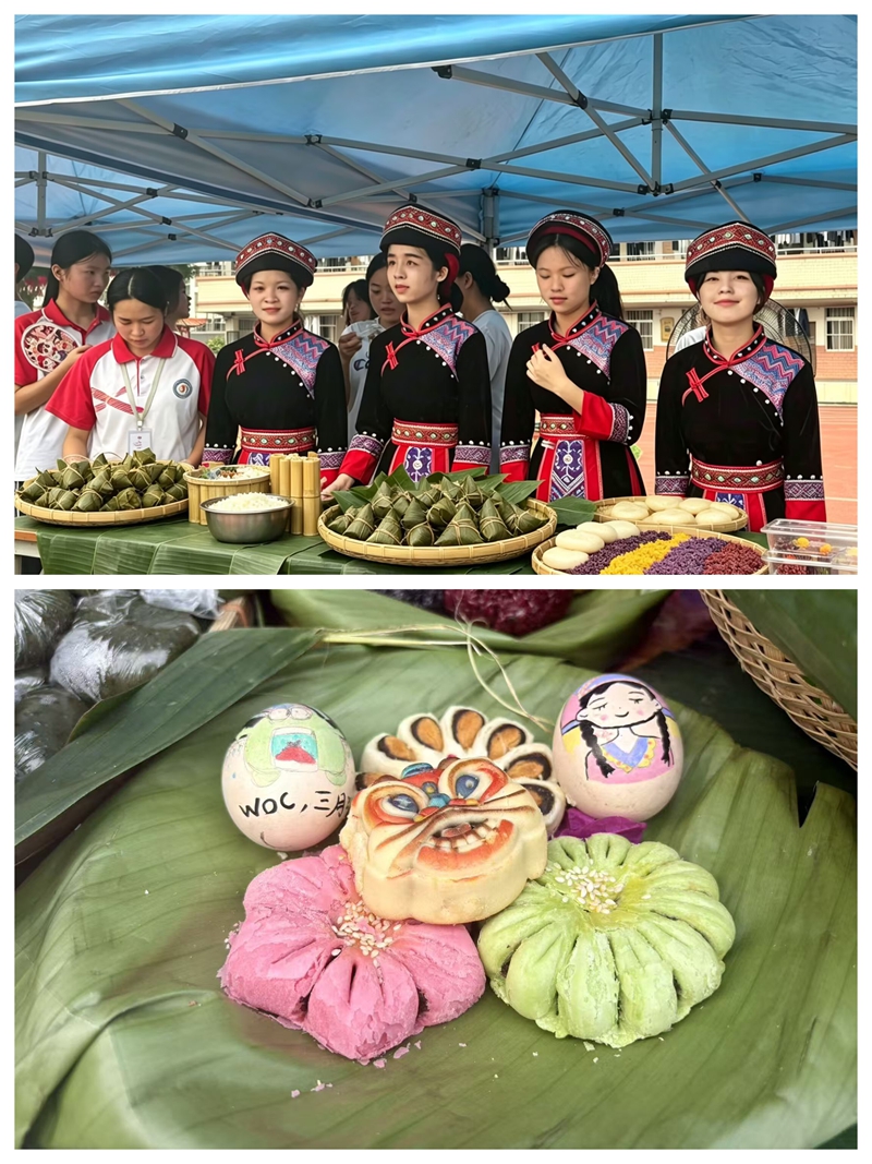 美食体验区同样人气高涨。五色糯米饭、青团、各类糕点及油茶等壮族传统美食供师生免费品尝。大家一边品味地道风味,一边交流节日习俗,现场洋溢着浓厚的节日氛围。