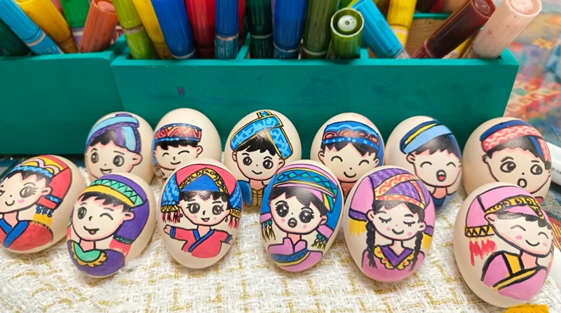 在非遗民俗体验区,“一笔一划写壮乡”书法活动与“彩蛋绘春”彩绘体验同步开展。师生们用笔墨书写壮乡情怀,用彩蛋描绘春日美好,在动手实践中深入了解壮族民间艺术的精巧与深意。